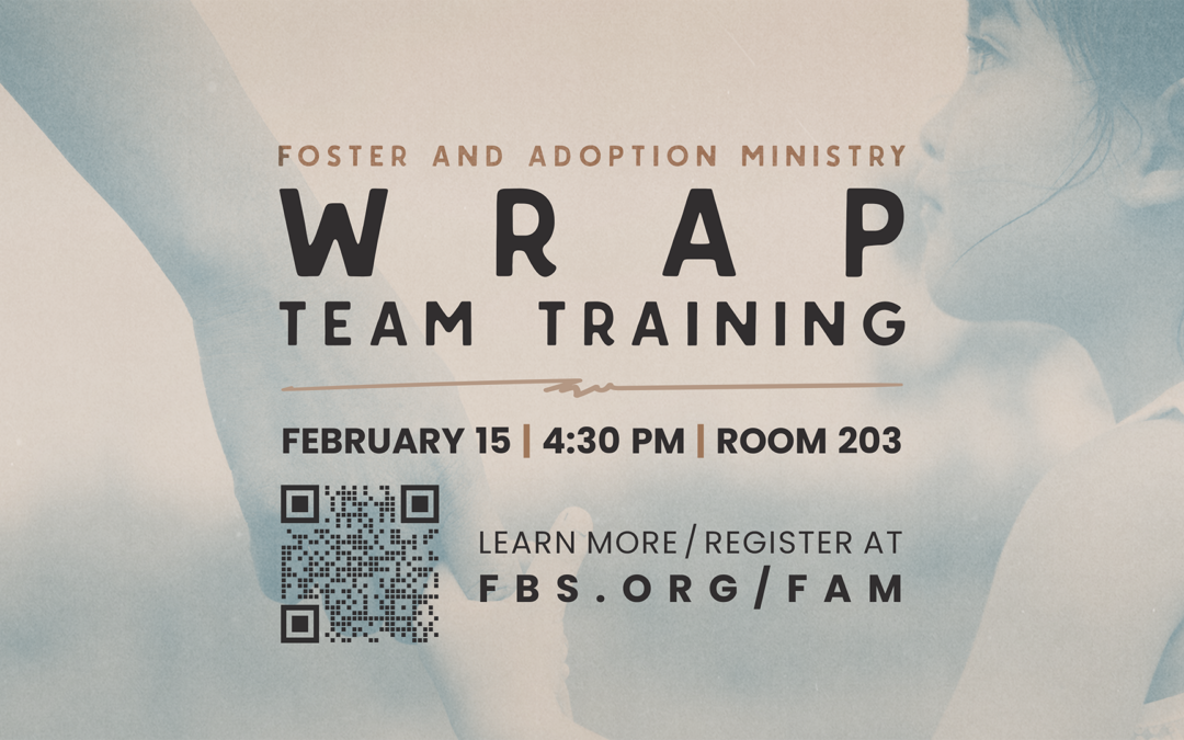 Join us on February 15th at 4:30 PM in TKD room 203 for an informational overview of our Foster and Adoption serving opportunities in 2026 and a training opportunity for WRAP Teams.